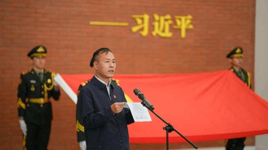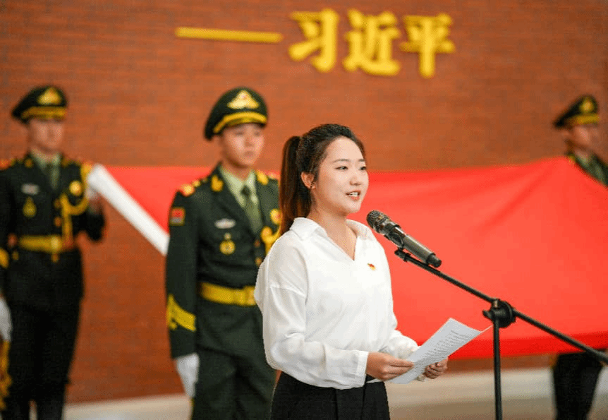 伴随着慷慨激昂的《国际歌》,鲜红的党旗徐徐展开,在全场庄严的注视下,入党宣誓仪式正式拉开序幕。