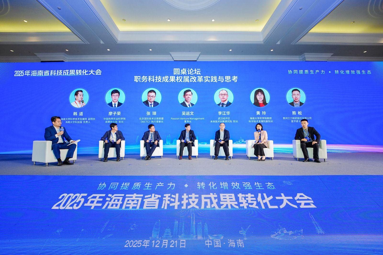 12月21日,2025年海南省科技成果转化大会在海口召开。嘉宾在圆桌论坛上展开深入对话。
