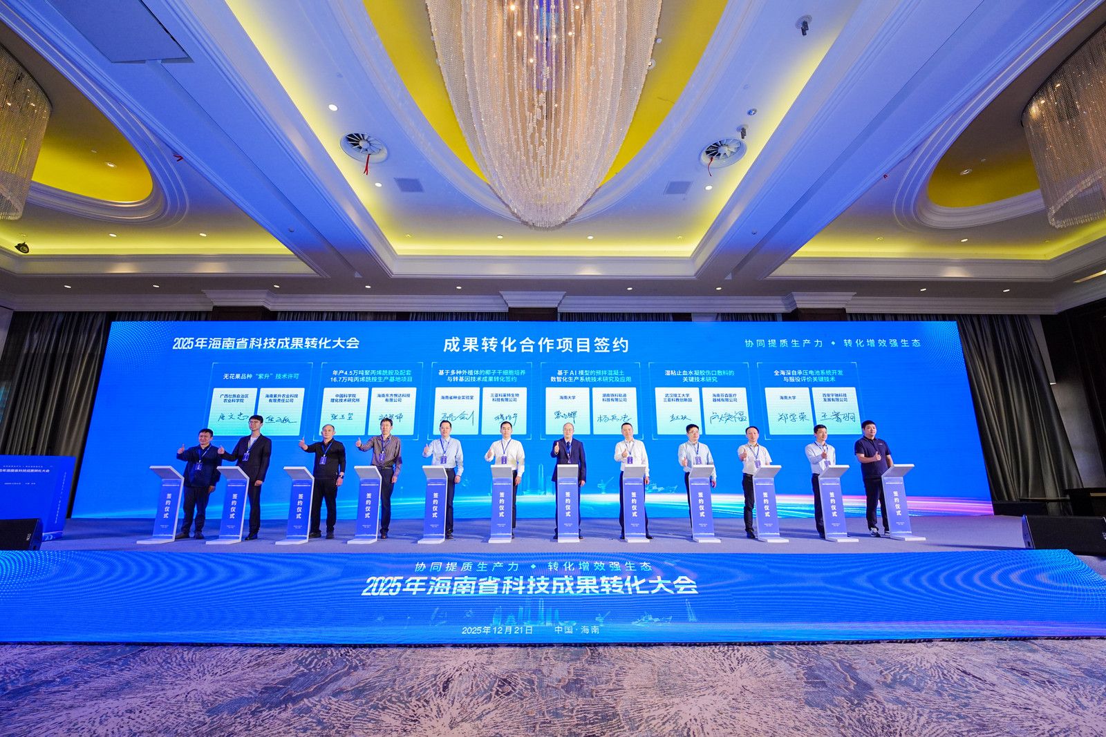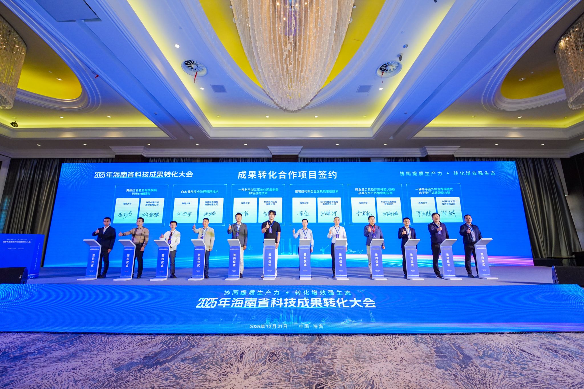 12月21日,2025年海南省科技成果转化大会在海口召开。签约环节。