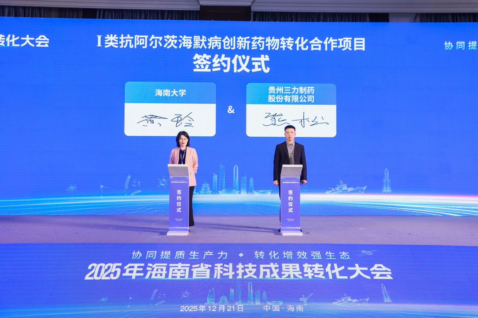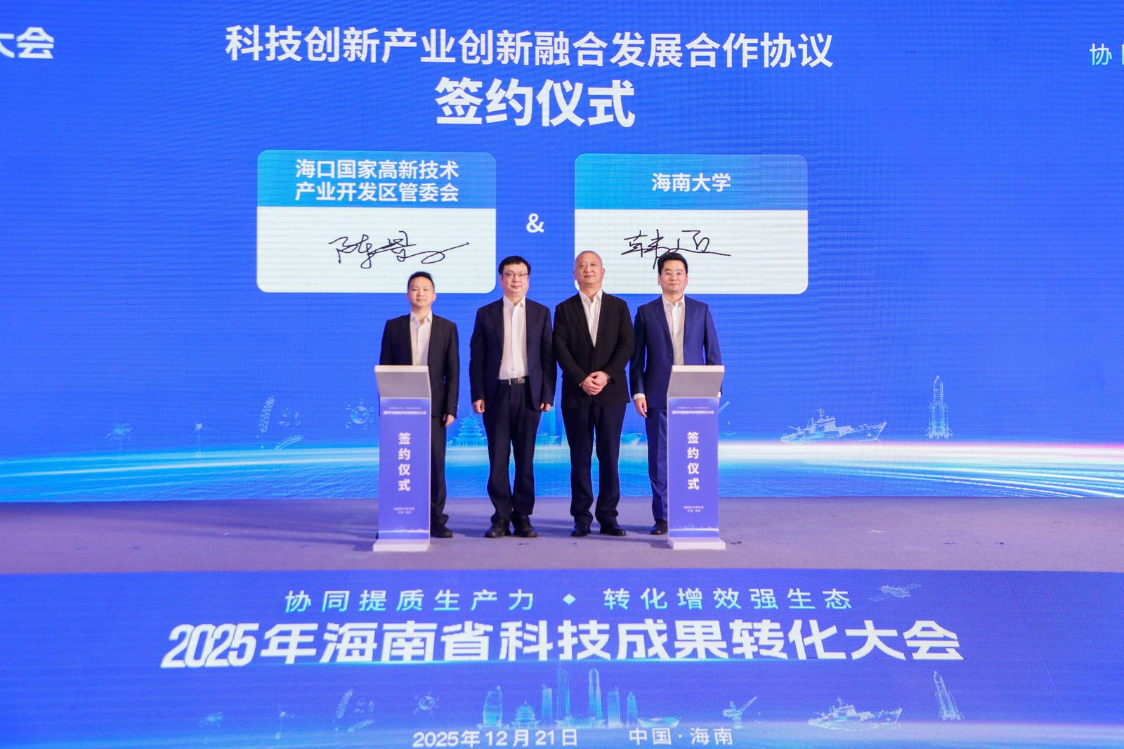 大会现场达成多项重要合作:海口国家高新技术产业开发区与海南大学签署科技创新产业创新融合发展合作协议;“海南大学科技园成果转化基金”同步启动,并与6个项目签订首批投资意向;13项代表性科技成果转化项目集中签约,覆盖南繁种业、海洋科技、绿色生态与新能源技术、生物制造与生命健康等前沿领域。其中,海南大学与贵州三力制药股份有限公司合作的“Ⅰ类抗阿尔茨海默病创新药物转化合作项目”签约金额达2亿元,彰显海南吸引和承载重大科技成果转化的能力。