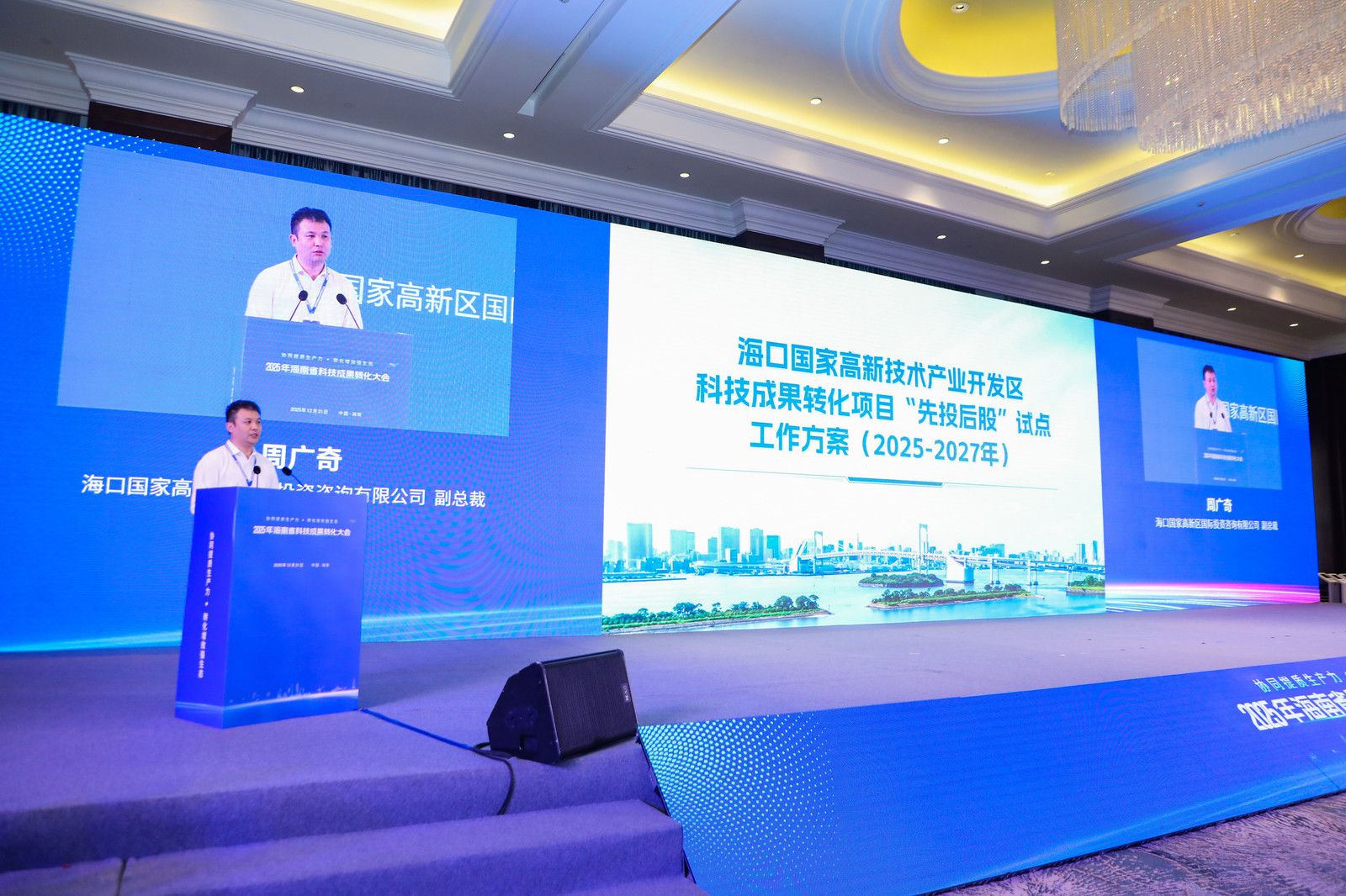 按照省科技厅印发的《以“先投后股”模式支持科技成果转化试点实施方案(试行)》总体布局,海口国家高新技术产业开发区推出了“先投后股”相关政策并在大会上进行了宣介。该政策旨在通过“先期投入、后期转股”的方式,有效降低科创项目早期融资门槛,强化政府资金引导作用,吸引社会资本共同参与,进一步激发科研人员创新创业活力,加速科技成果从实验室走向产业化。
