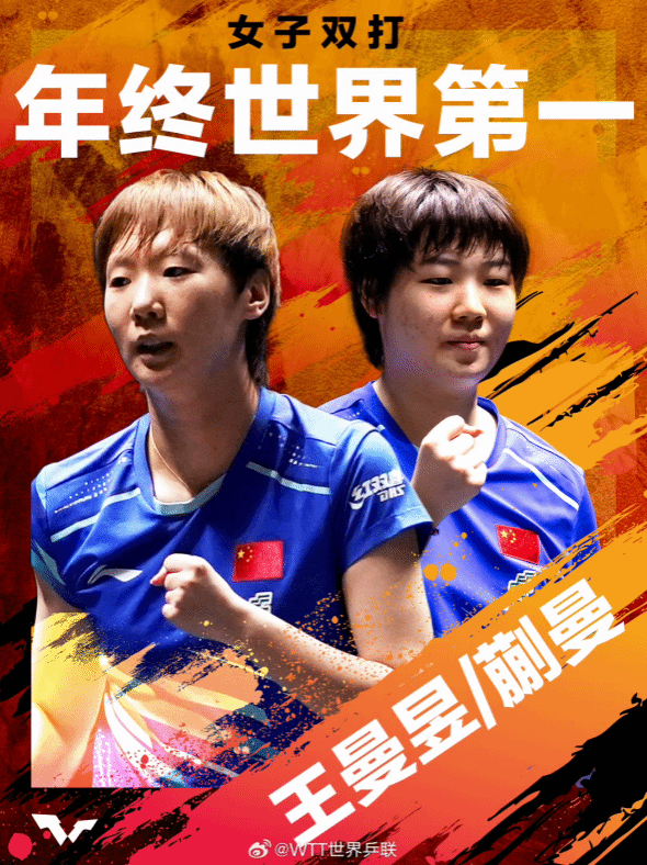 蒯曼、王曼昱女子双打年终世界第一。图片来源:WTT世界乒联