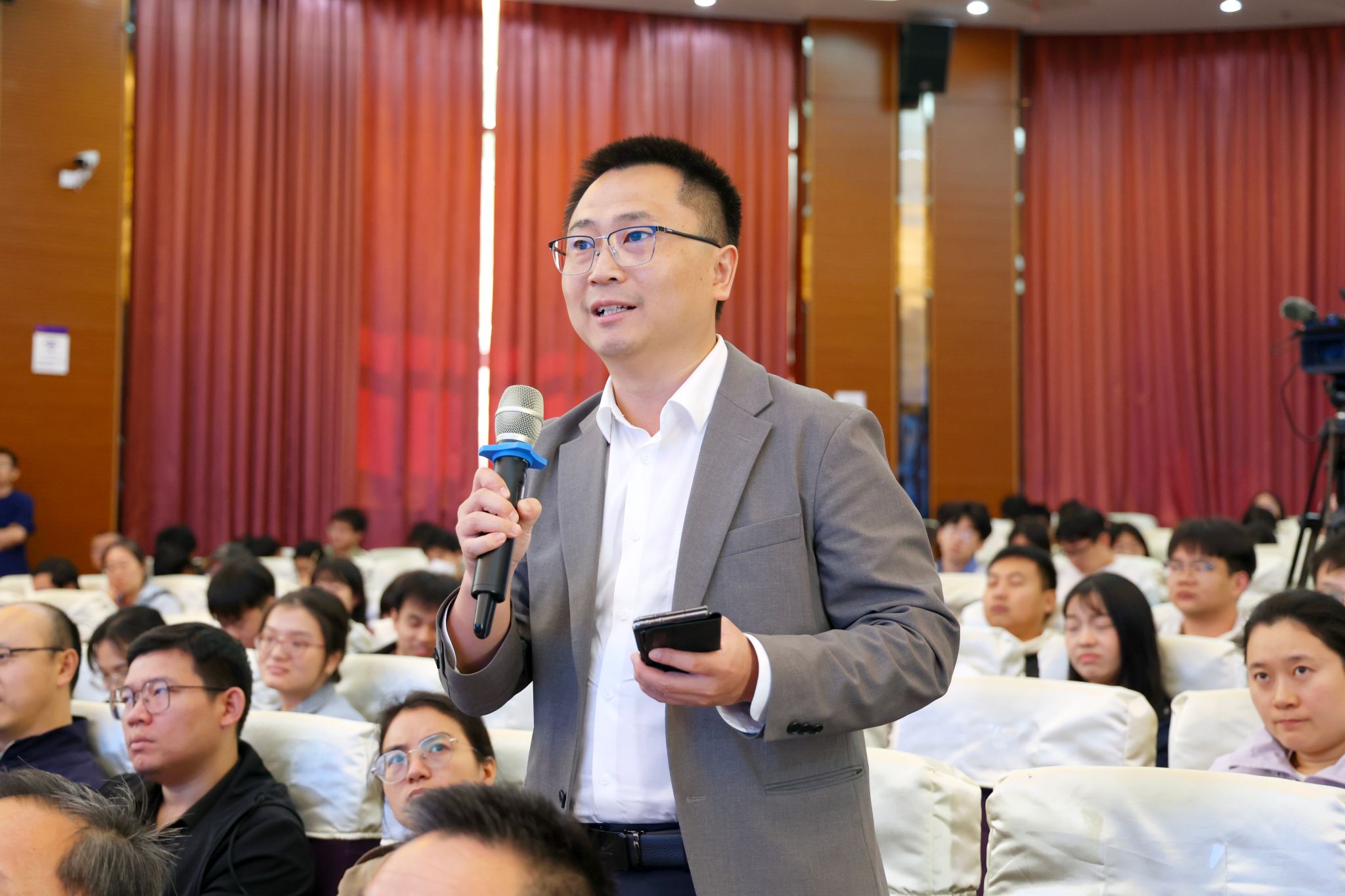 讲坛现场互动热烈,师生围绕量子计算关键材料瓶颈、室温超导可行性、量子态测量方法等问题踊跃提问,丁洪逐一给予专业解答。