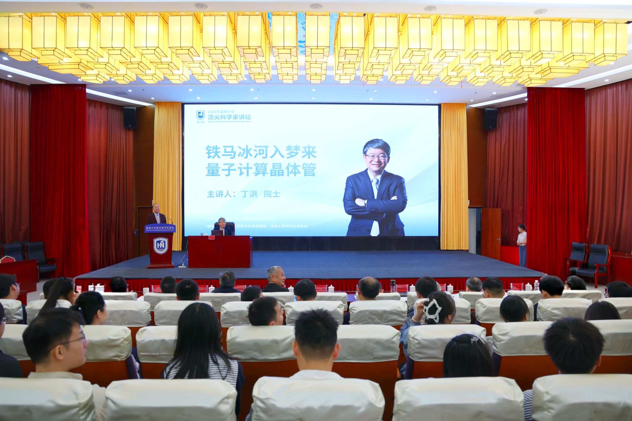 本站讯(记者 冯梦凡 高可贺)12月31日上午,海南大学第五十五期顶尖科学家讲坛在社科楼二楼报告厅举办。中国科学院院士,上海交通大学李政道研究所讲席教授丁洪作题为《铁马冰河入梦来 量子计算晶体管》的主题报告。海南大学党委书记李湖,中国科学院院士、校长骆清铭,党委常委和校领导张继友、邱锡光、贺勇、邹勇华、陈骏、岳文出席讲坛。
