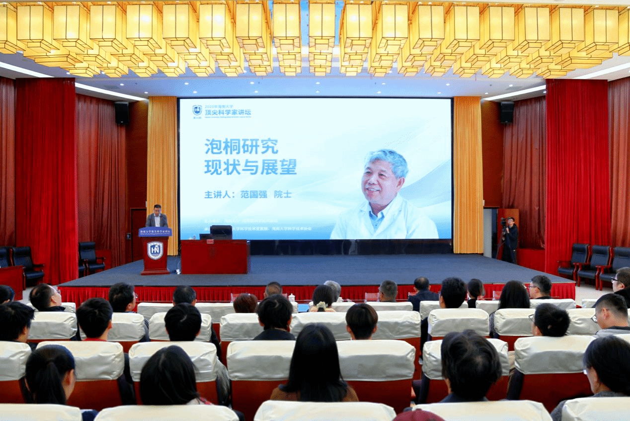 本站讯(记者 王一钦 张梦婷 高可贺 邢靖晨)1月8日上午,海南大学第五十六期顶尖科学家讲坛在社科楼二楼报告厅举办。中国工程院院士范国强作题为《泡桐研究现状与展望》的主题报告。中共海南省委人才发展局副局长吕寻铂,海南省科学技术协会党组成员、副主席徐伟,海南大学党委常委、副校长李步洪出席讲坛。
