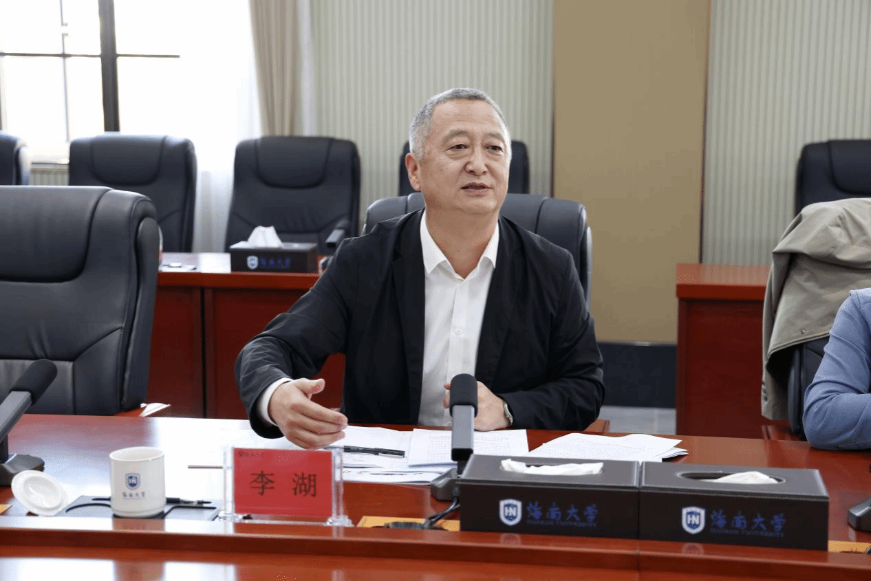1月16日下午,海南大学统一战线2026年迎新春座谈会在朝华楼二楼多功能会议室召开。李湖在讲话。高可贺 摄