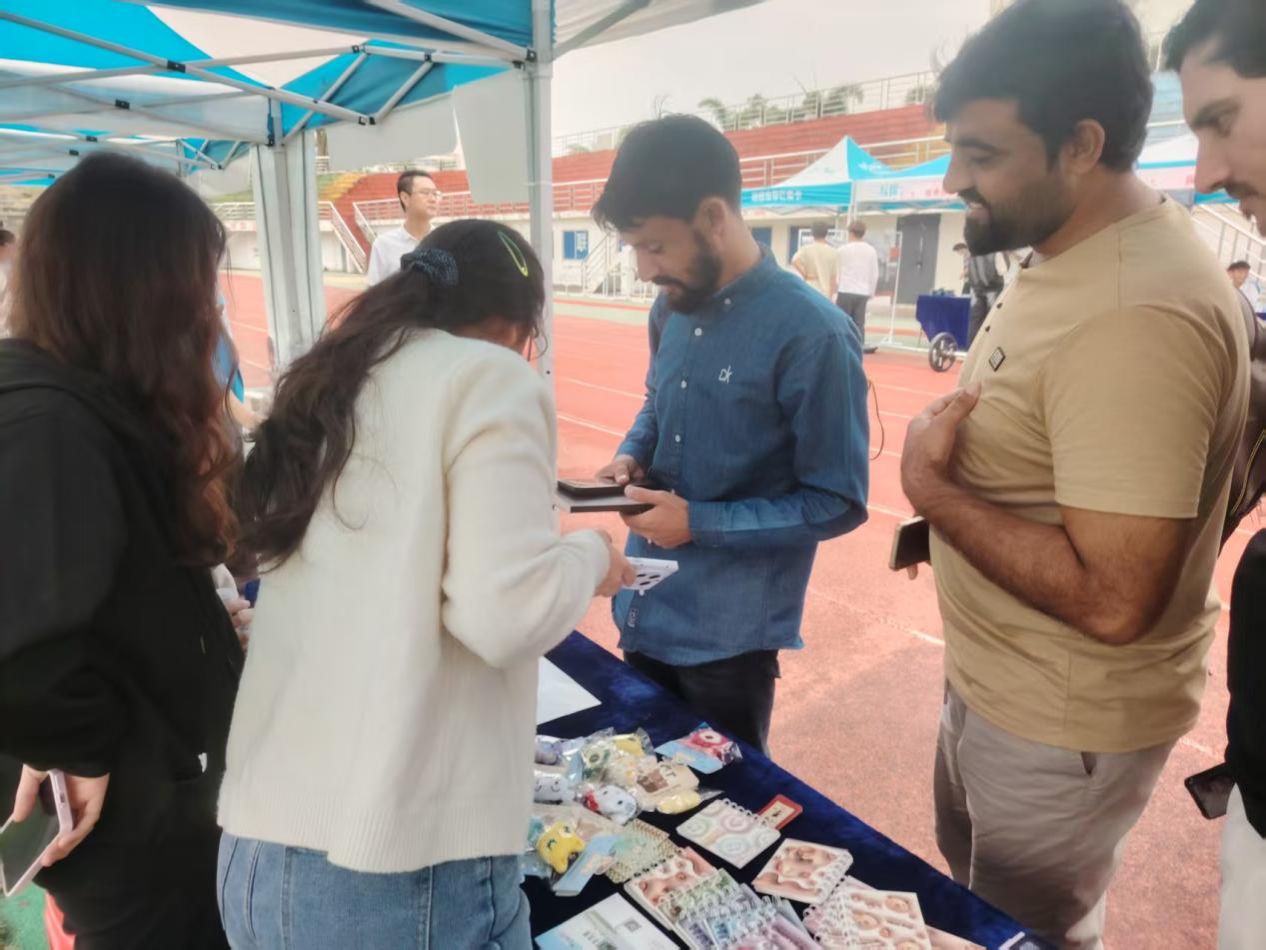 海南大学百团大战活动外国留学生参与海南大学爱心艺术团线下活动。海南大学爱心艺术团 供图