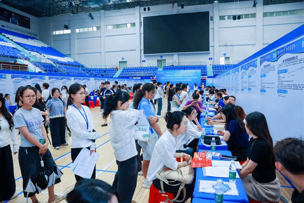 同期,多功能综合体育馆内场面热烈、秩序井然,第七届校友企业专场招聘会如期启幕。来自全国各地的142家校友企业,携手澄迈县人力资源和社会保障局、澄迈县就业局,带来2841个优质岗位,岗位设置立足自贸港,辐射全国,方向紧密对接自贸港建设重点产业领域,现场初步达成就业意向1485份,现场签订就业协议358份。招聘会现场,校友企业代表与在校学子深入交流,悉心分享职场经验,前瞻行业发展前景,既彰显了校友反哺母校的深厚情谊,也体现了校友企业回馈社会的责任担当。海大人携手校友企业,以千余个优质岗位架起直通职场的桥梁,切实助力毕业生留琼就业发展,为海南自贸港封关运作之年注入了持续有力的人才动能。
