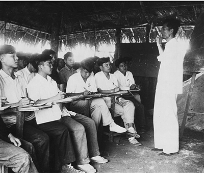茅草房(教室)搭建好了,学生到位了,但创校初期的艰难远未结束——没有教材,成为摆在师生面前的又一道难关。