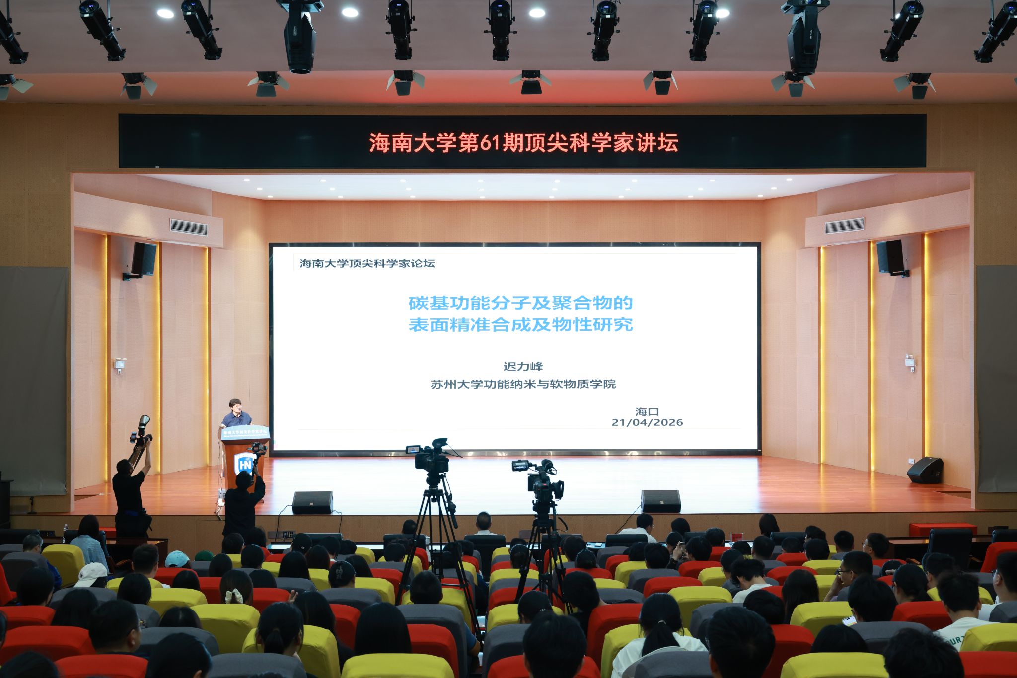 4月21日下午,海南大学第六十一期顶尖科学家讲坛在田家炳副楼二楼报告厅举办。迟力峰作报告。陈思甜 摄
