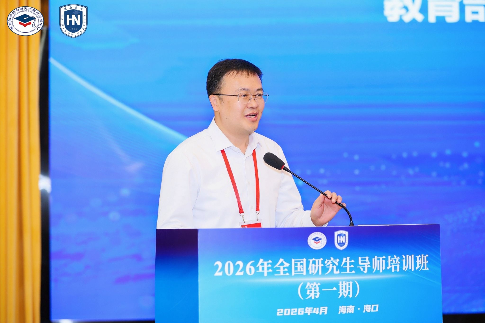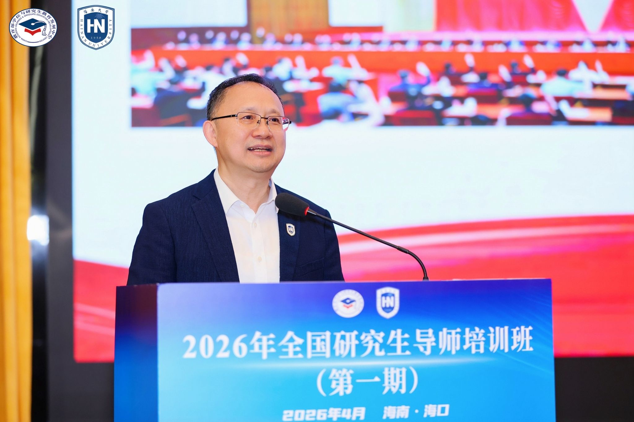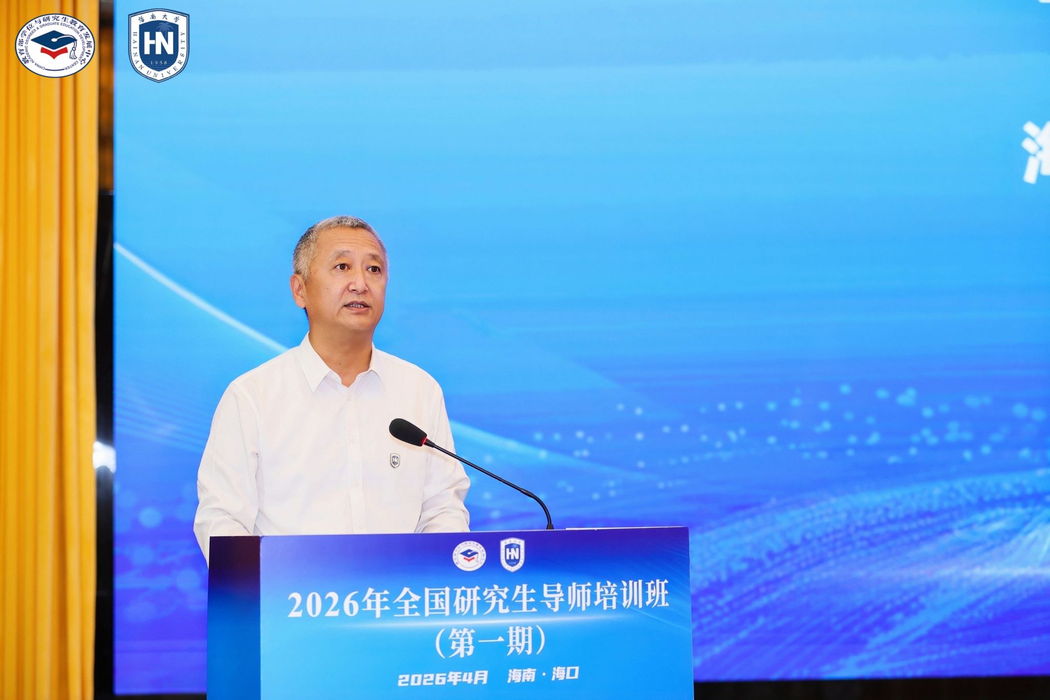 4月22日上午,2026年全国研究生导师培训班(第一期)在海南大学开幕。李湖致辞。宣传部 摄