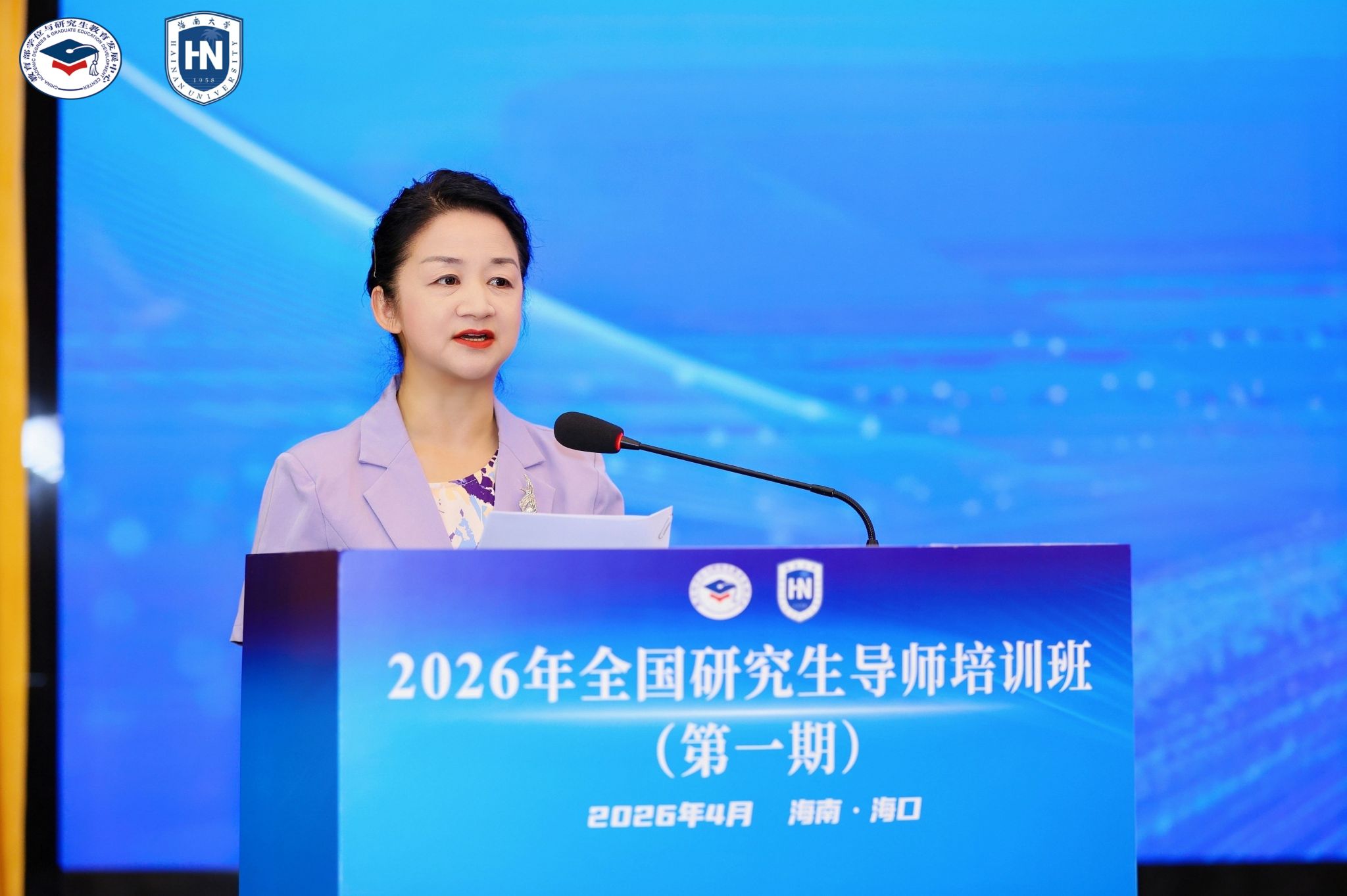 4月22日上午,2026年全国研究生导师培训班(第一期)在海南大学开幕。李渝凤致辞。宣传部 摄