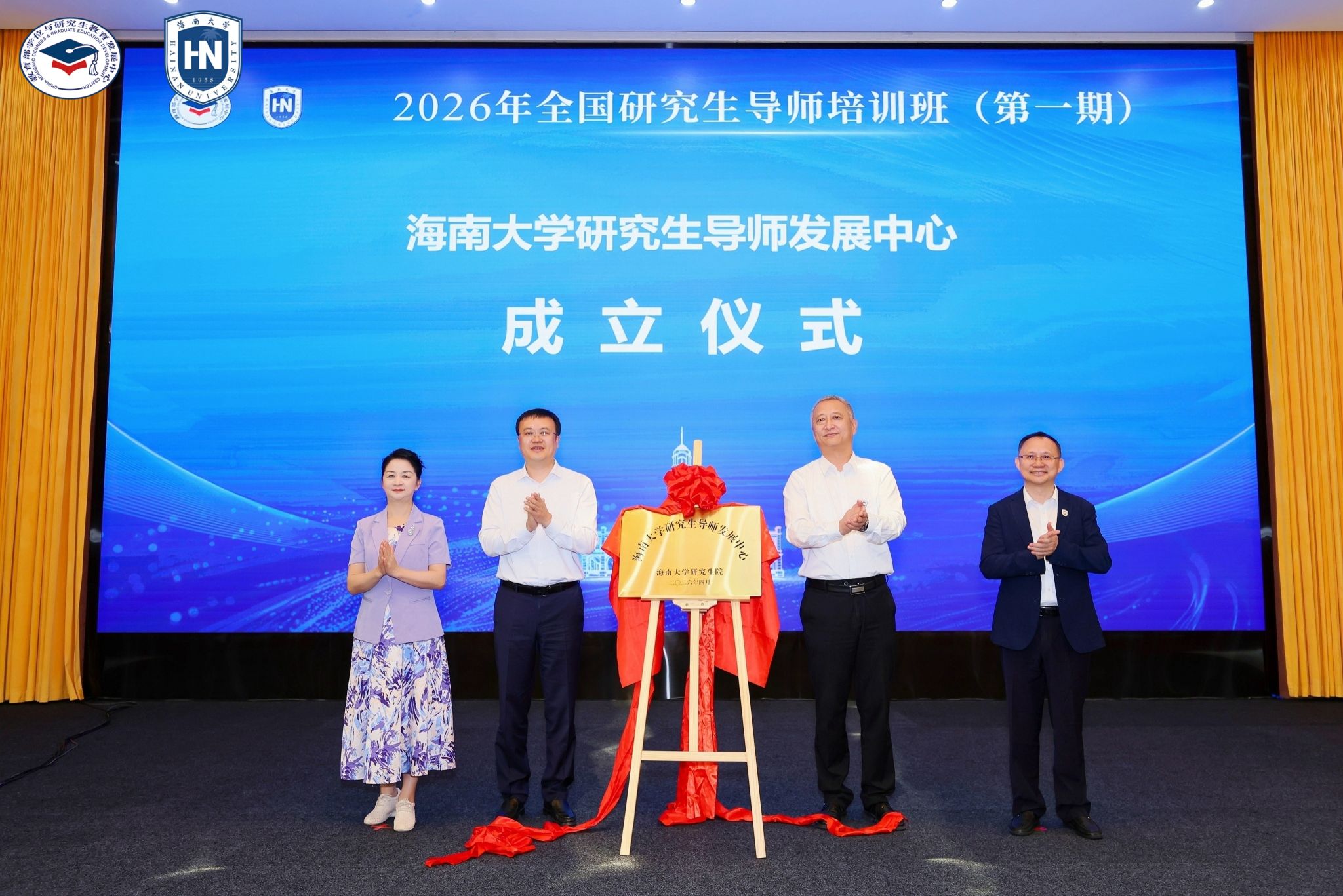 4月22日上午,2026年全国研究生导师培训班(第一期)在海南大学开幕。海南大学研究生导师发展中心成立仪式揭牌。宣传部 摄