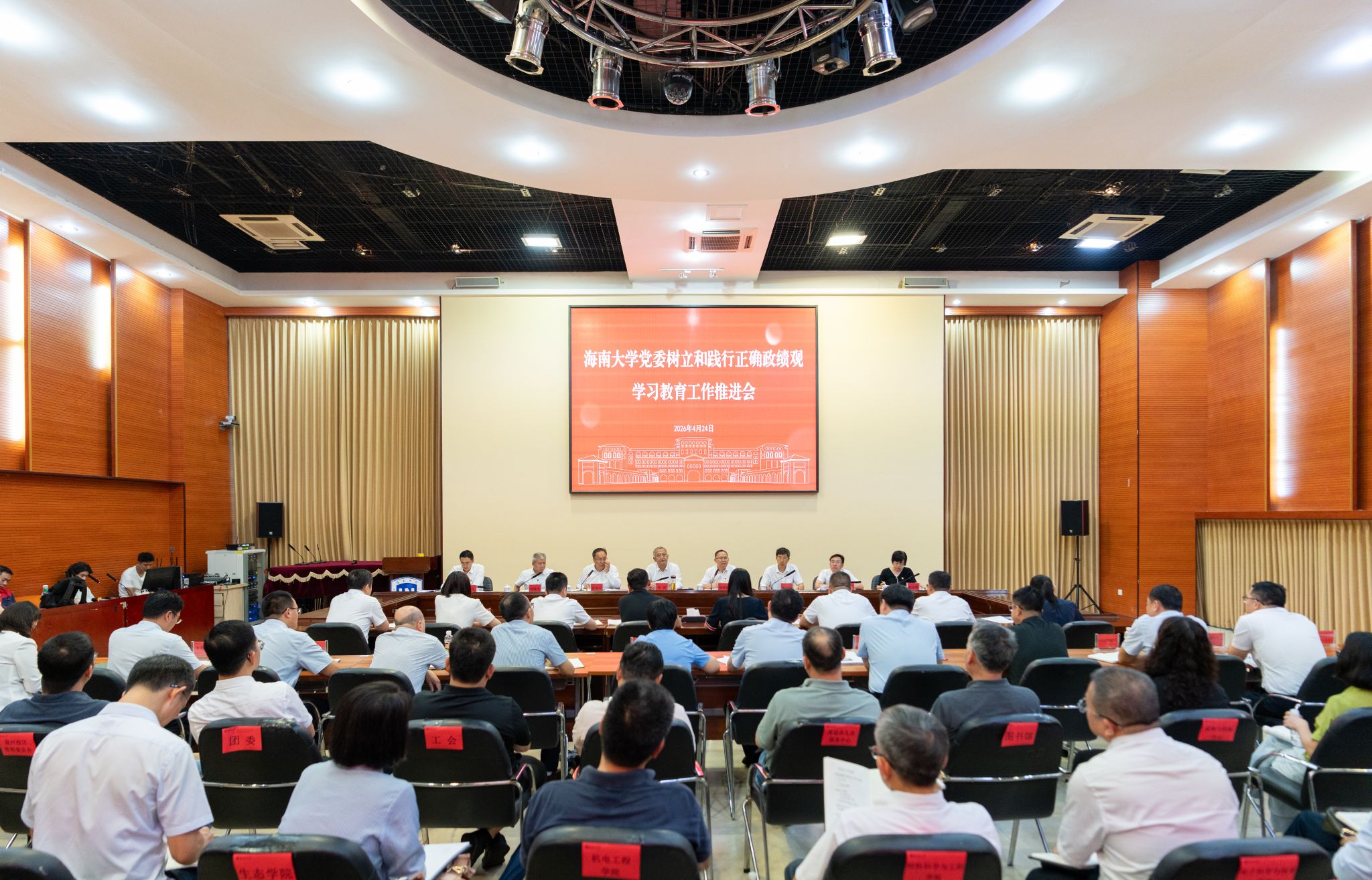 本站讯(记者 王一钦)4月24日下午,海南大学党委树立和践行正确政绩观学习教育工作推进会在思源学堂多功能厅召开。校党委书记李湖,党委副书记、校长骆清铭等领导出席会议。会议由党委常务副书记张继友主持。