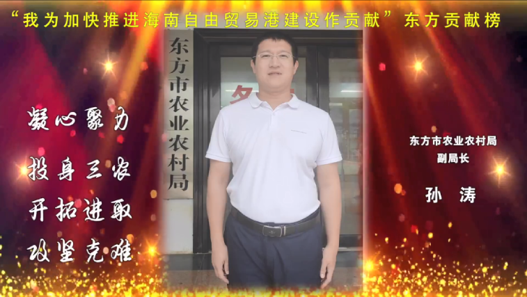 本站讯(记者王佳琪)3月31日,海南大学东方市农业农村局挂职干部孙涛、海南大学驻东方市乡村振兴工作队队长王远露因在抗击新冠肺炎疫情和复工复产工作中表现突出,分别荣获东方市第一季度“我为加快推进海南自由贸易港建设作贡献”先进个人。