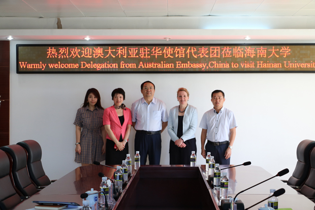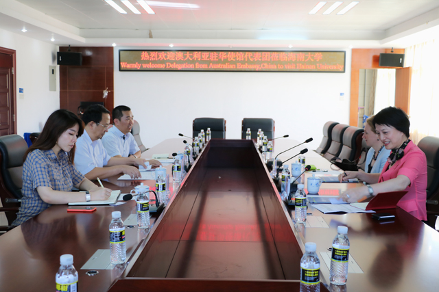 7月4日上午,澳大利亚驻华使馆教育与研究公使衔参赞贺蓉歌一行2人访问海南大学,海南大学校副校长傅国华热情接待并会见来宾。