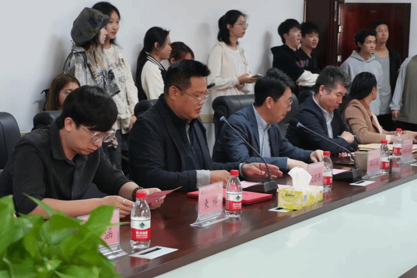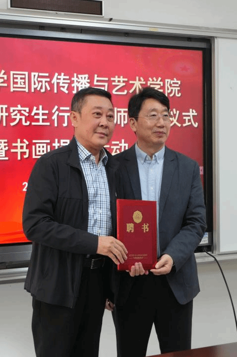 座谈会后,学院举办了行业导师聘任仪式。郑立波院长向行业导师颁发聘书,阮江华主席向学院捐赠书画作品以及画册。