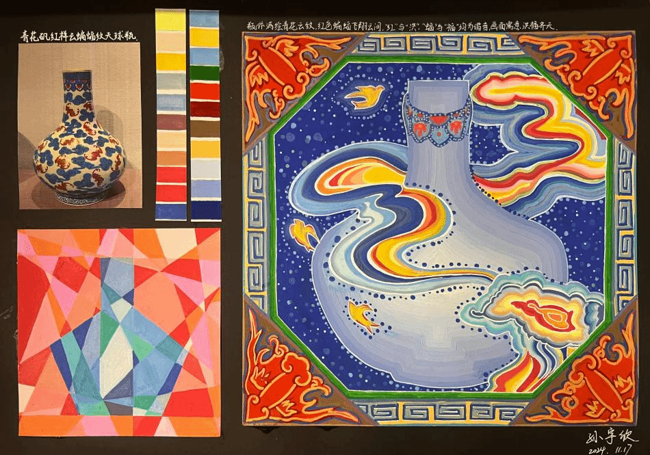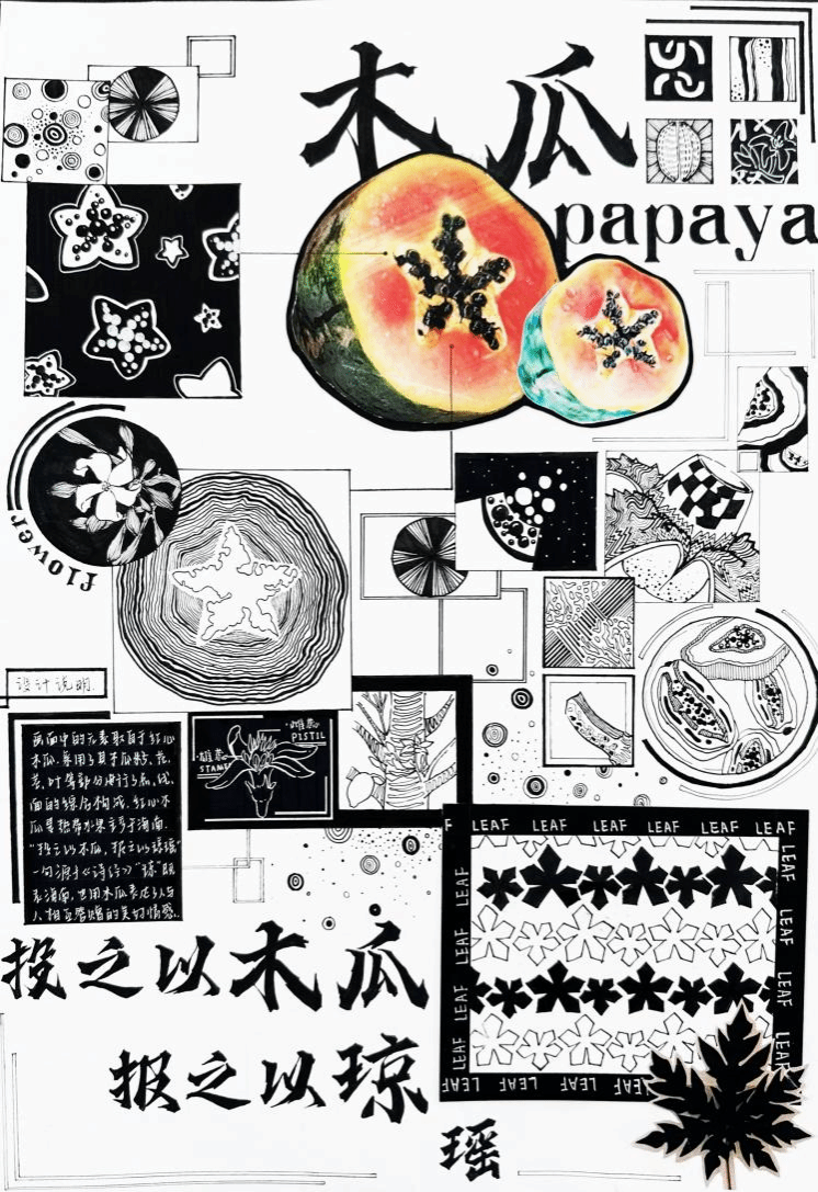 本次展览主题“纵横未央”阐释了设计教学的双维内核:“纵横”指设计学科交叉融合的横向张力,涵盖观察方式、思维逻辑、审美感知及服务意识的多维培养框架,暗合中国传统“仰观俯察”的认知哲学;“未央”则借汉代“长乐未央”的绵延意象,隐喻设计教育将推动学生的思维从基础的“点线面元语言”向复杂的“视觉修辞系统”进阶。