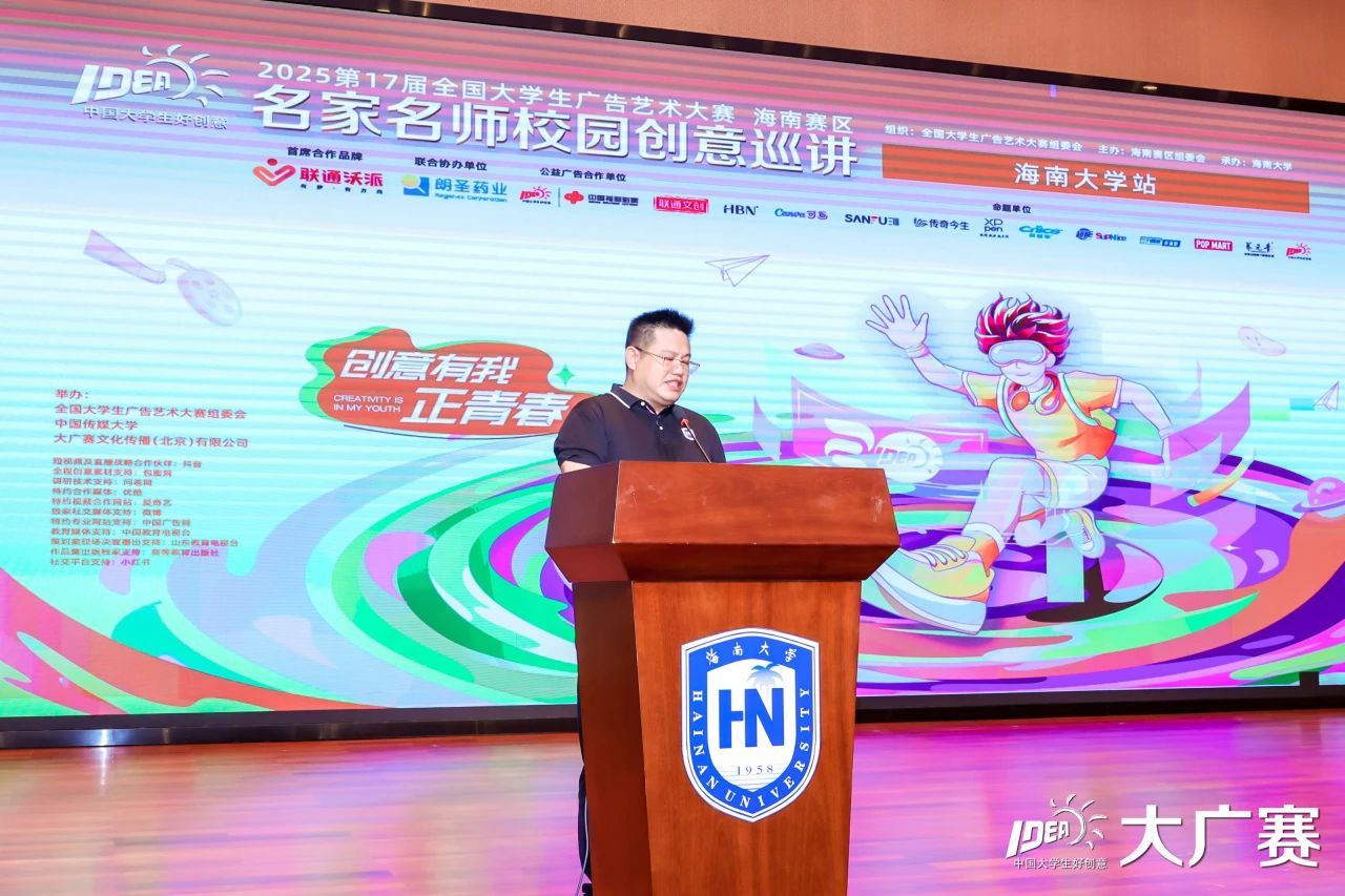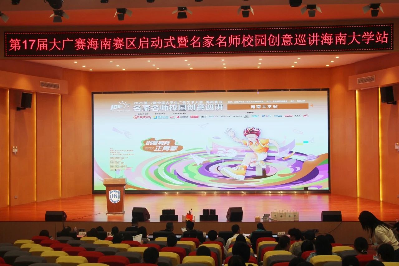 2025年4月19日14点30分,第17届全国大学生广告艺术大赛海南赛区启动式暨名家名师校园创意巡讲海南大学站在海南大学田家炳二楼报告厅正式启动。