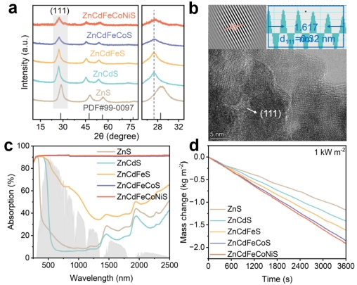 图1:高熵硫化物的结构表征以及太阳光吸收性能表现。