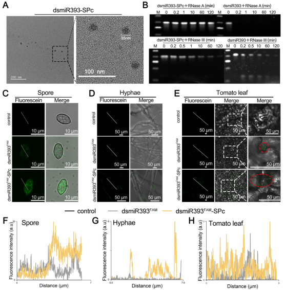 图2:纳米材料SPc可显著增强双链miR393分子的稳定性与递送效率