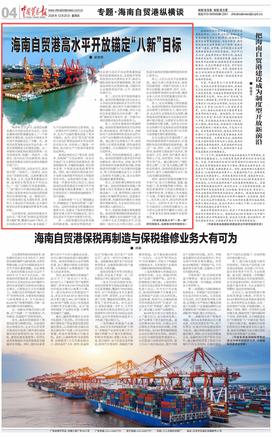 在海南省委“十五五”规划建议中,明确提出了海南自贸港“八新”目标。这些目标既是自贸港建设的重要方向,也奠定了海南自贸港在国家发展大局中的战略定位,助力其在高水平开放中发挥更大作用。