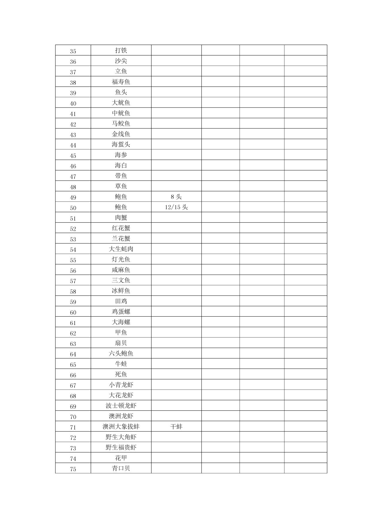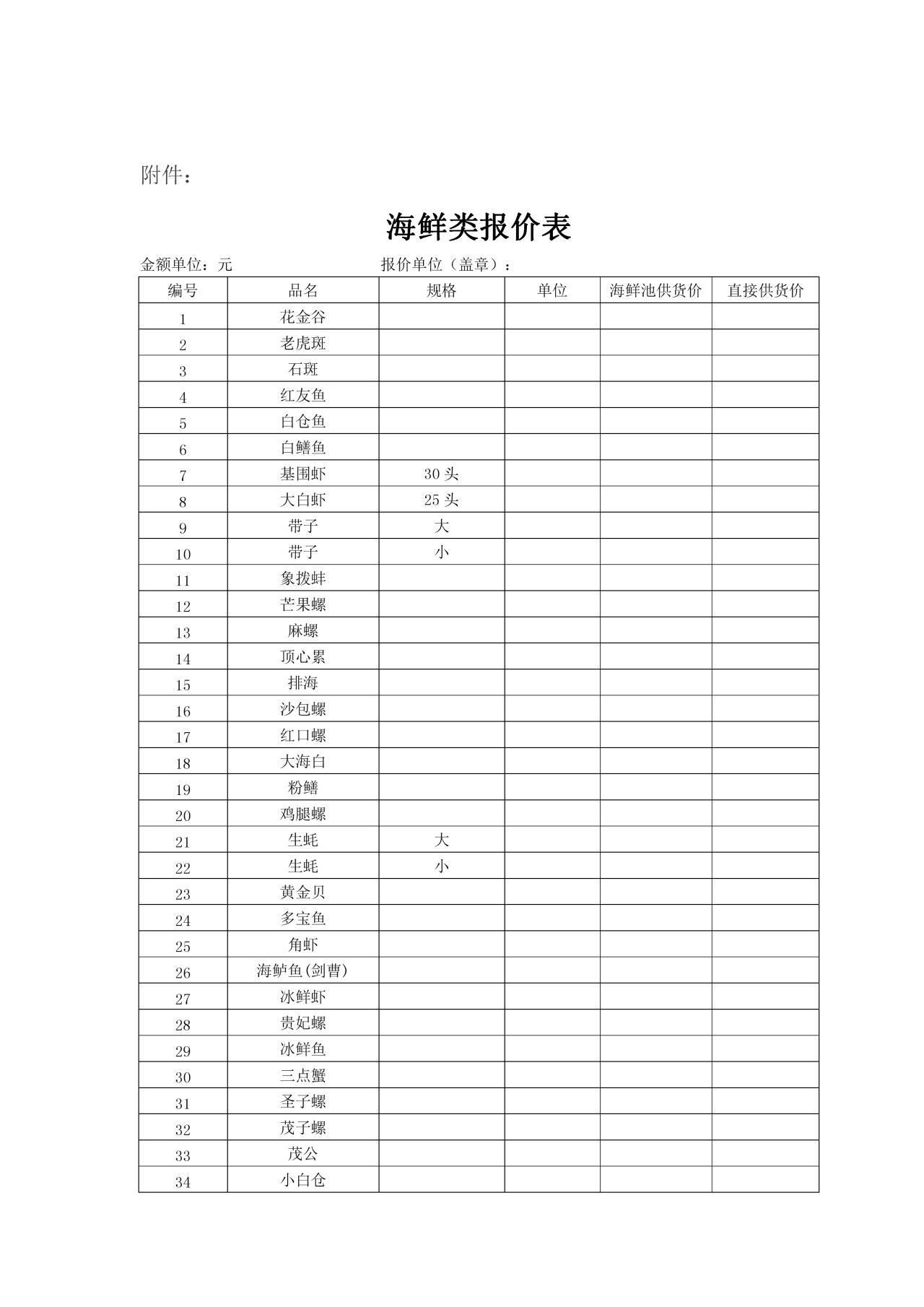 二楼海鲜池海鲜饲养及海产品固定供货,详见附件。