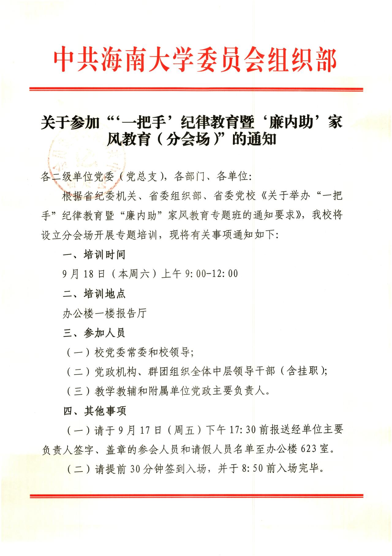 关于参加“‘一把手’纪律教育暨‘廉内助’家风教育(分会场)”的通知