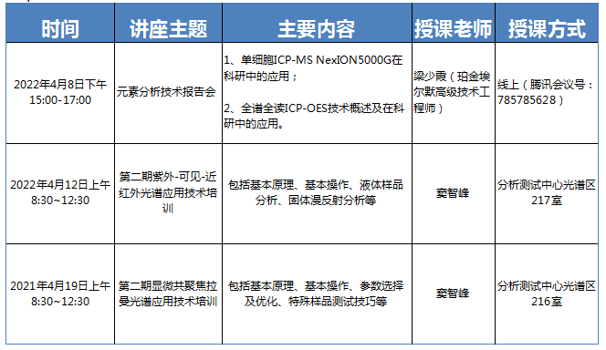 为满足校内科研用户的使用需求,促进我校高水平科研成果产出,提升服务水平,分析测试中心现面向全校师生举办系列培训与讲座(如下),请老师们积极参加。详细信息请点击下列链接: