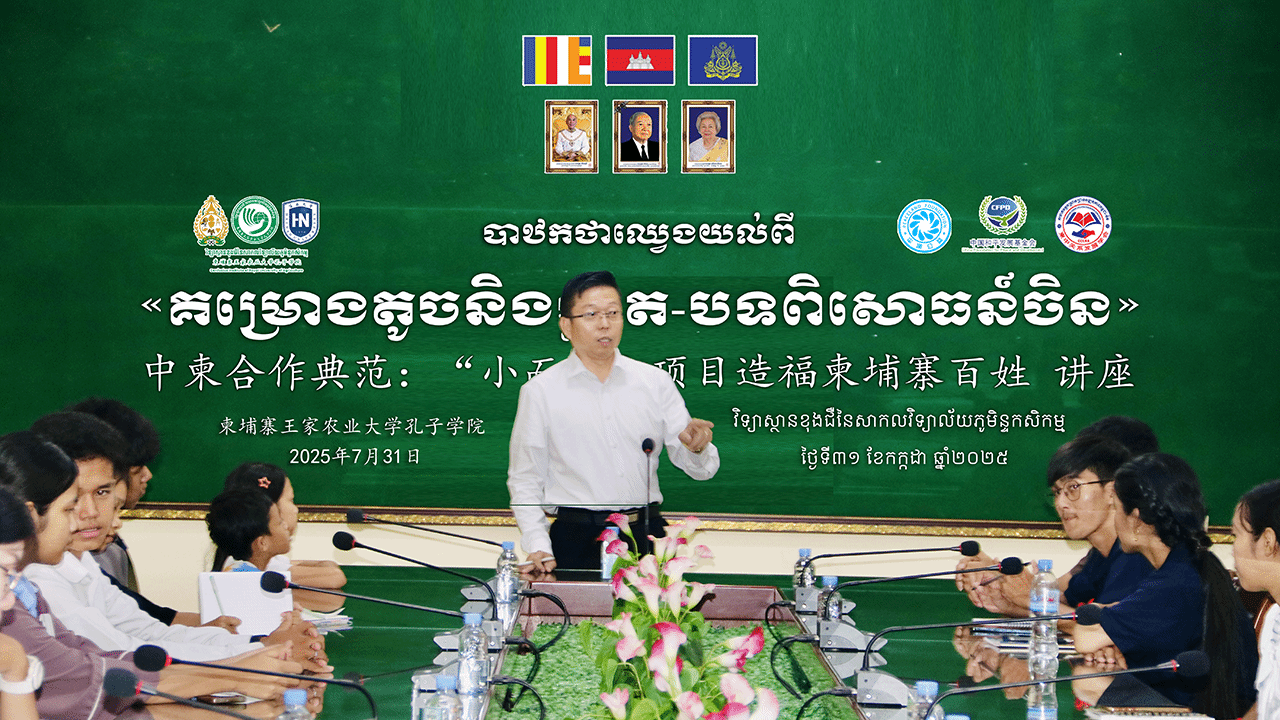 7月31日下午,柬中关系发展学会、中国和平发展基金会与北京平澜公益基金会合作,在王家农业大学孔子学院举办中柬合作典范:“小而美”项目造福柬埔寨百姓讲座,旨在突出强调中国国家主席习近平于2021年9月提出的全球发展倡议,展示其重要意义与现实影响,以及展示中国和平发展基金会在柬埔寨落实的中柬友好扶贫示范村项目。
