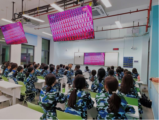 会议室里,同学们一同观看阅兵仪式,当威武的受阅方队在屏幕上出现时,大家掌声不断,眼神中满是敬佩与向往。