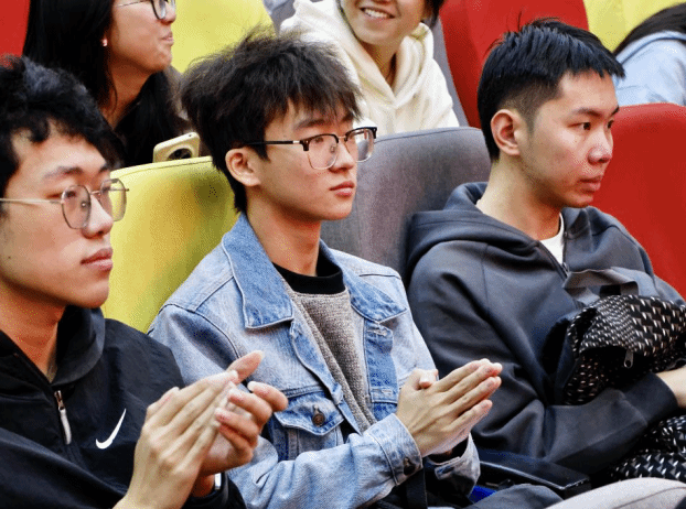 宣讲过程中,讲师团成员始终秉持“贴近青年、服务青年”的理念,立足青年视角、运用青年话语,精准传递“我们想说的”政策导向,充分回应“青年想听的”思想关切,实现理论传播与青年需求的同频共振。活动现场互动氛围热烈高涨,每当讲师抛出封关运作政策解读、青年岗位建功等相关问题,台下师生代表纷纷主动举手、踊跃应答,观点碰撞中深化了对政策的理解,问答交流里明晰了奋斗方向。最后,伴随激昂的旋律,观众们集体起立,齐声高喊:“青春为中国式现代化挺膺担当!” 这声音铿锵有力、久久回荡,吹响新时代青年矢志奋斗的奋进号角。