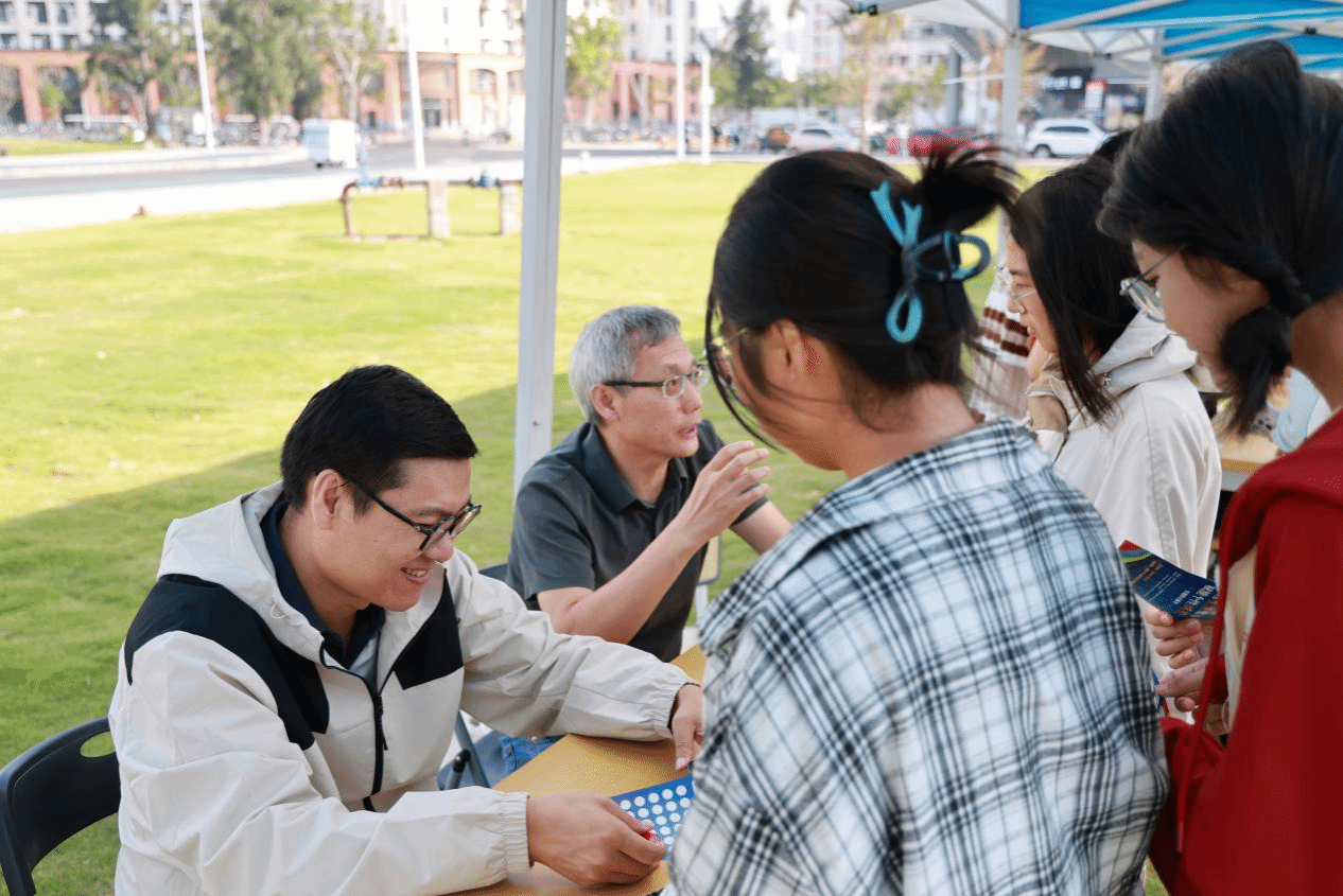 本站讯2025年11月23日下午,海南大学“致远生涯集市,赋能个性成长”生涯成长集市在海甸校区椰林小道草坪成功举办。本次活动由共青团海南大学委员会、海南大学学工部(处)和海南大学本科生院联合主办,海南大学各学院、海南大学各书院、海南大学学生会、海南大学研究生会、海南大学大学生科学技术协会共同承办,为学生构建“一站式”生涯成长支持平台,活动期间吸引千余名师生参与。