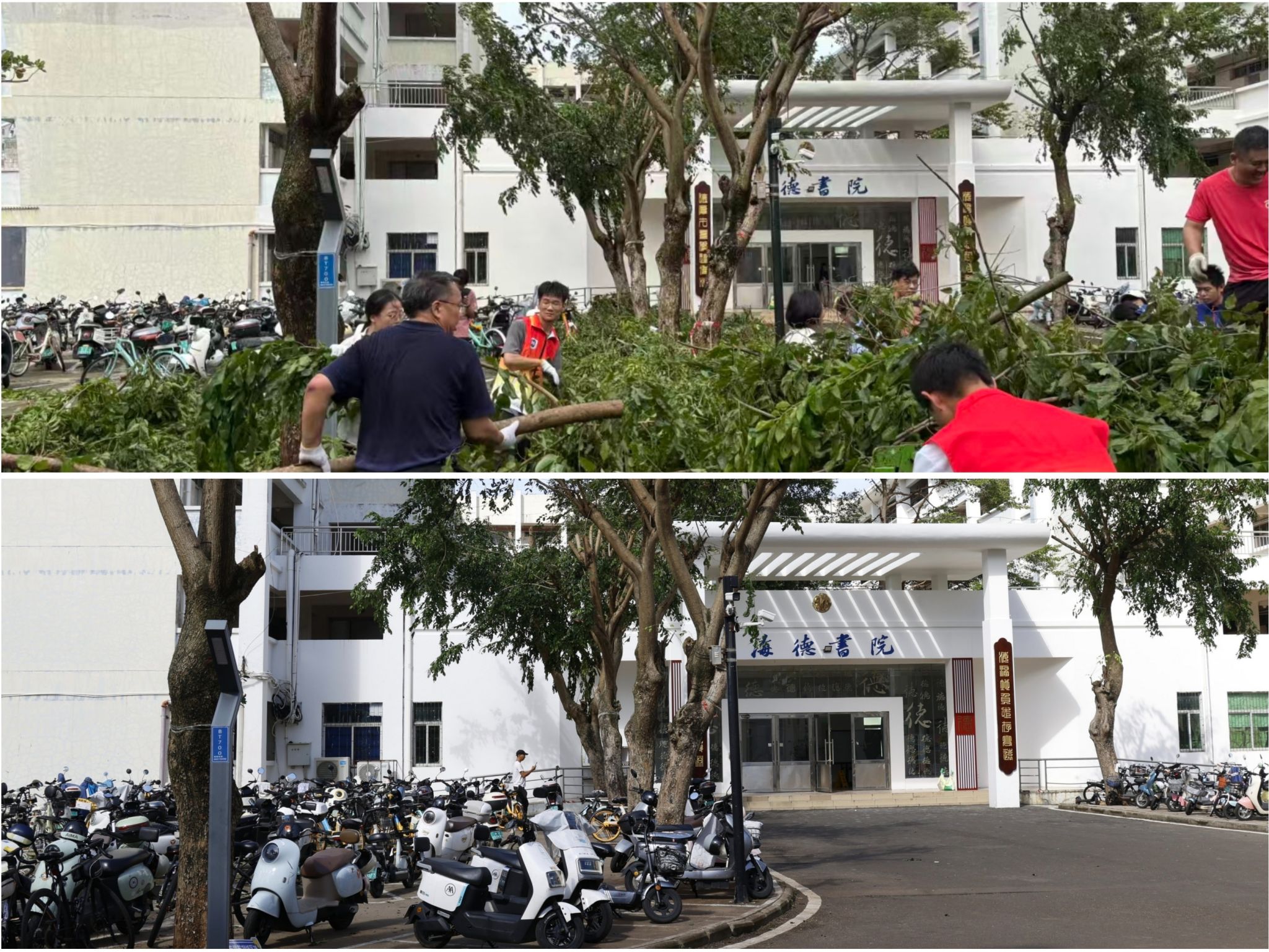 本站讯(记者 高可贺)今年第21号强台风“麦德姆”于10月5日在海南文昌一带沿海擦过,给海口及周边区域带来了强降水,造成校园部分区域积水,部分树木倒伏。6日,在学校师生的共同努力下,校园环境已基本恢复。校园内“台风前、台风后、恢复后”的场景对比,清晰呈现...
