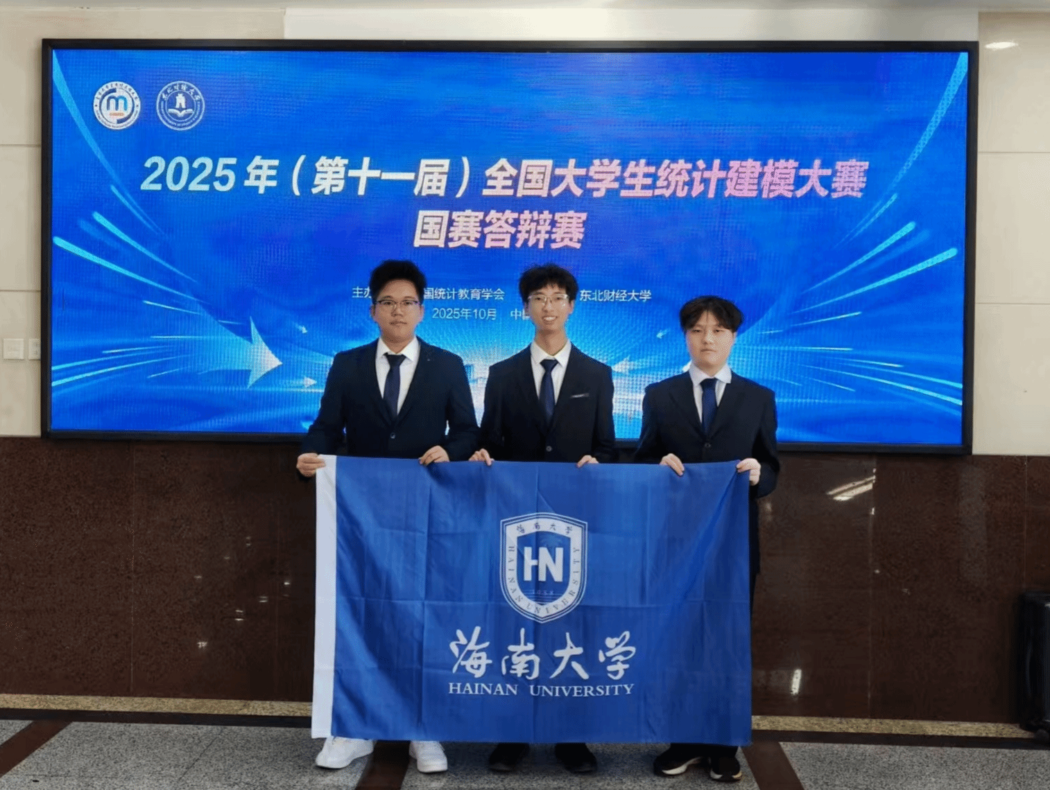 本站讯(记者 林靖雯)10月29日,第十一届全国大学生统计建模大赛成绩公布。由海南大学食品科学与工程学院云永欢老师带队指导的本科生团队获得一等奖(获奖率0.29%),研究生团队获得二等奖(获奖率0.57%)。