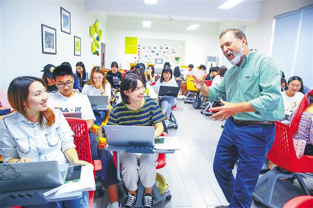 外籍教师在为海大国旅学院学生授课 日前,在教育部统一部署下,海南大学亚利桑那州立大学联合国际旅游学院(以下简称海大国际旅游学院)适当增加招生名额,为受新冠肺炎疫情影响被迫改变、延迟甚至取消赴境外国家和地区留学计划的学生提供国内就学计划。参与此次临...