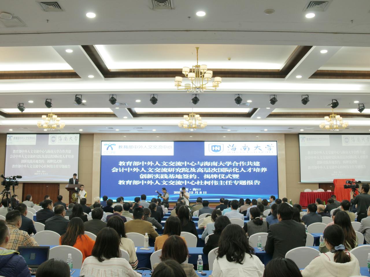教育部中外人文交流中心与海南大学共建会计中外人文交流研究院 “会计中外人文交流研究院”“高层次国际化人才培养创新实践基地”在海南大学揭牌