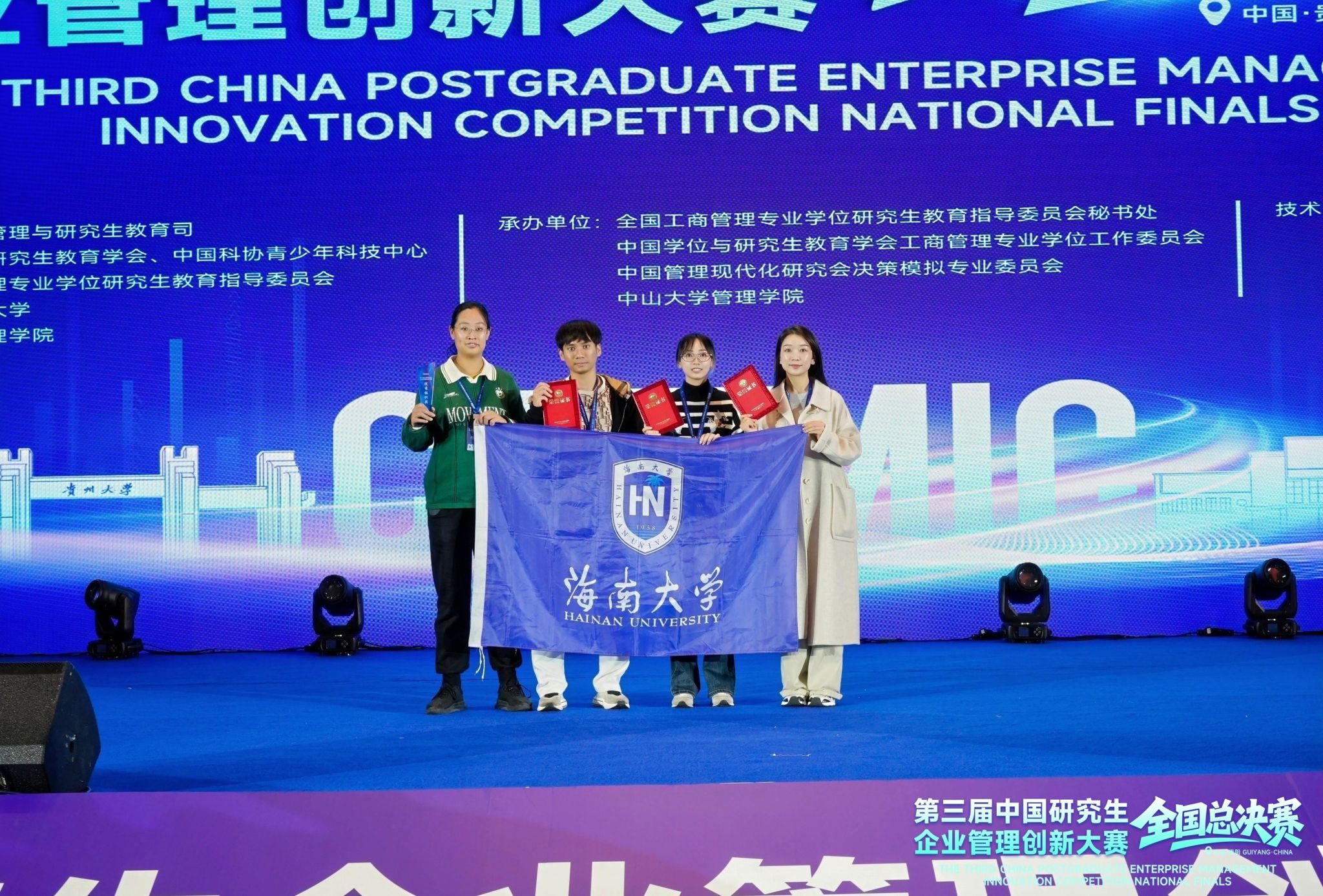 本站讯(通讯员 戚晓慧)2025年11月8日,第三届中国研究生企业管理创新大赛总决赛于贵州大学顺利结束。海南大学凭借出色的组织能力,荣获优秀组织奖,与北京大学、哈尔滨理工大学、电子科技大学等知名高校共同获此殊荣。海南大学MBA“三思智行队”,成功突围进入总决...
